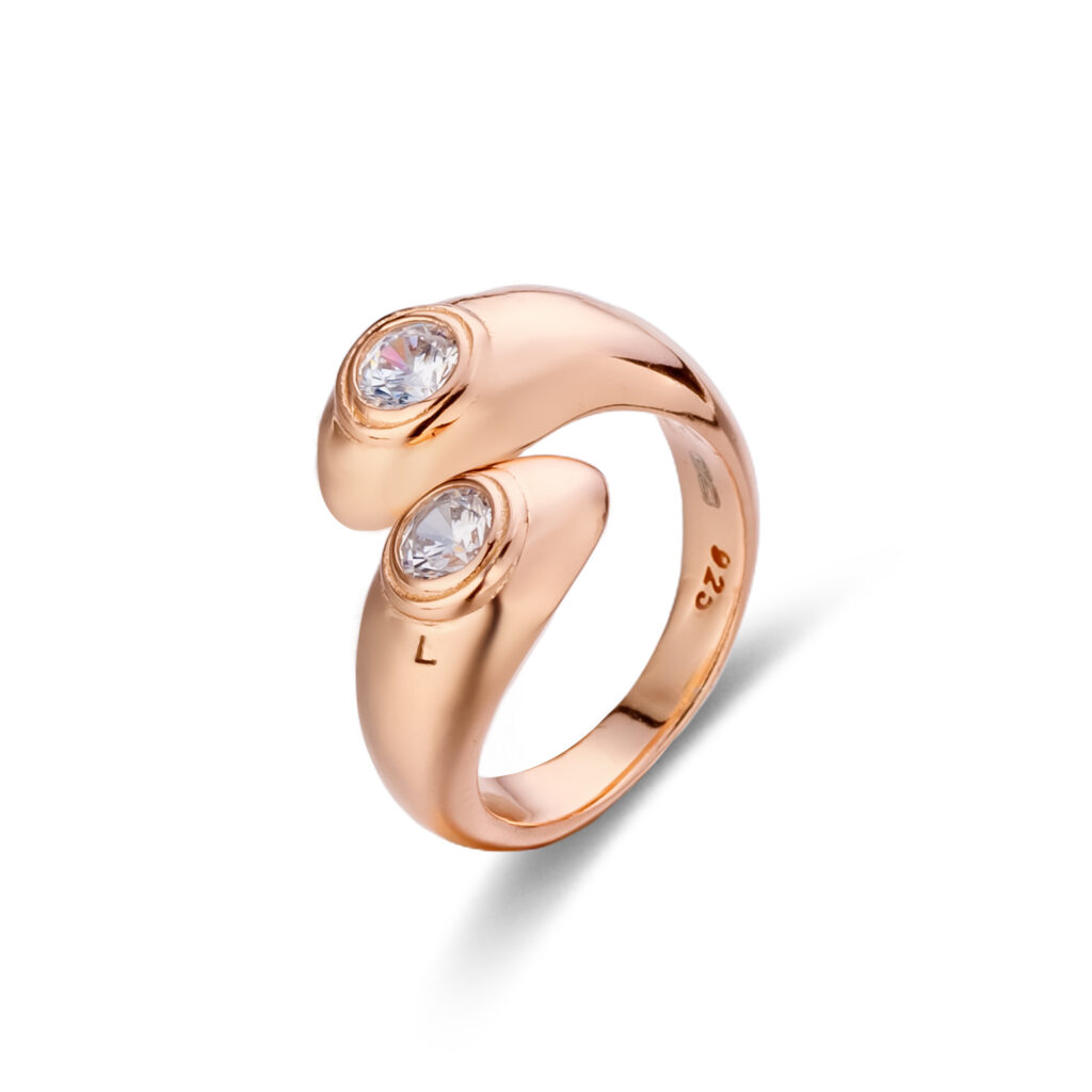 תהני מקלאס ייחודי ואלגנטי עם טבעת פתוחה ועדינה מרוז גולד משובצת באבני חן.