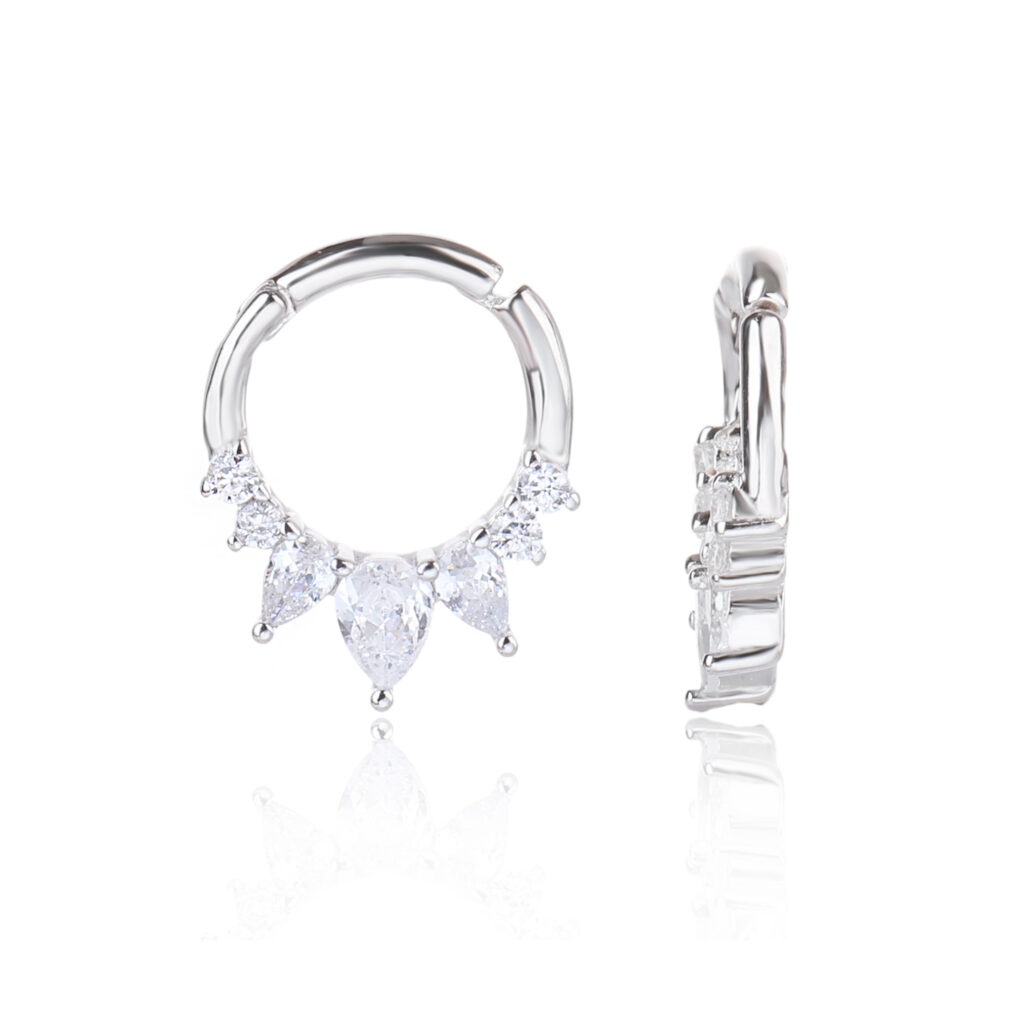 עגיל חישוק פירסינג משובץ אבני חן בעיצוב אלגנטי וקלאסי.