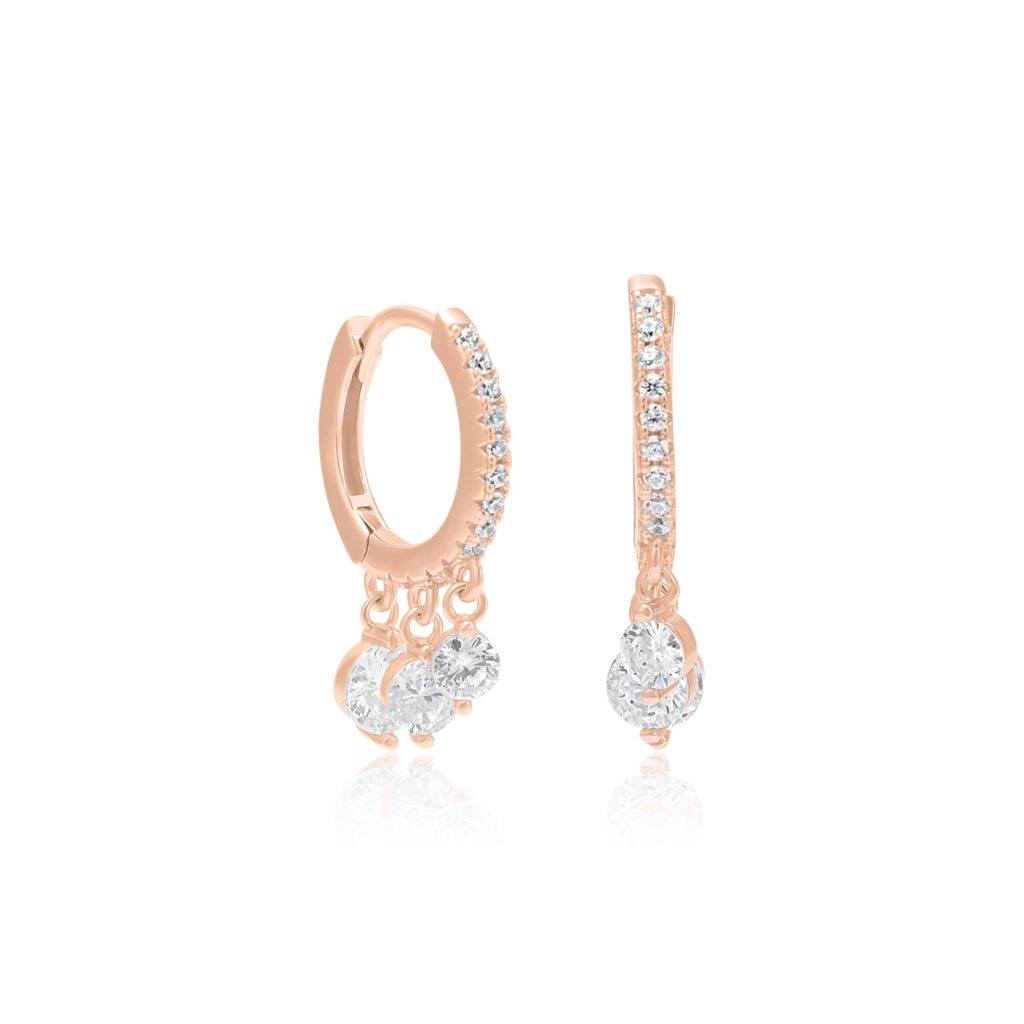 השלימי את הלוק עם עגילי רוז גולד נופלים, מושלמים ליום-יום.