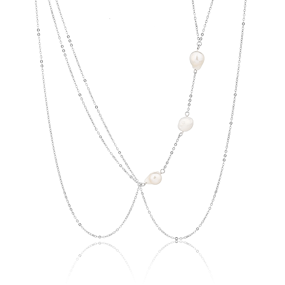 שרשרת בטן אלגנטית ומרשימה, עשויה מכסף 925 בגימור יוקרתי. העיצוב הכפול משלב שלוש פנינים עגולות המשובצות לאורך השרשרת, למראה נשי ומעודן.
