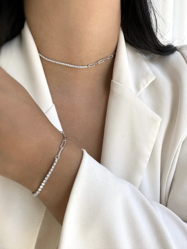 שרשרת טניס קלאסית בעיצוב עדין אך ייחודי, עשויה כסף 925.