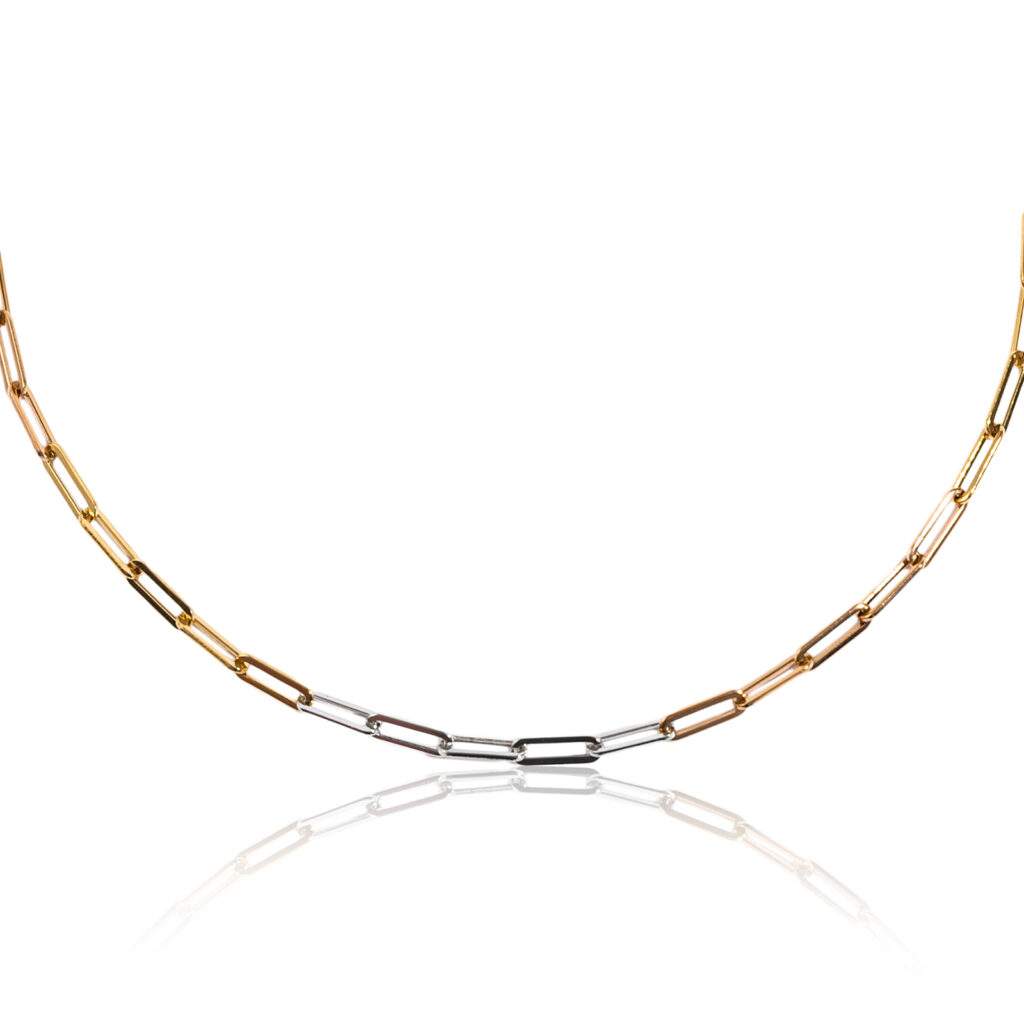 תן ללוק שדרוג יוקרתי עם שרשרת חוליות משולבות בכסף וזהב, בעיצוב אלגנטי.