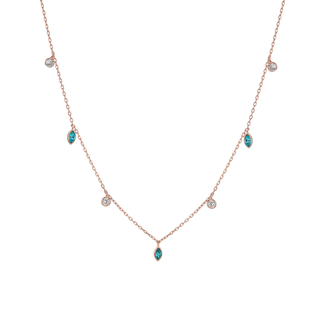 הוסיפי נגיעה של צבע עם שרשרת קולר בציפוי רוז גולד, משובצת באבן חן טורקיז