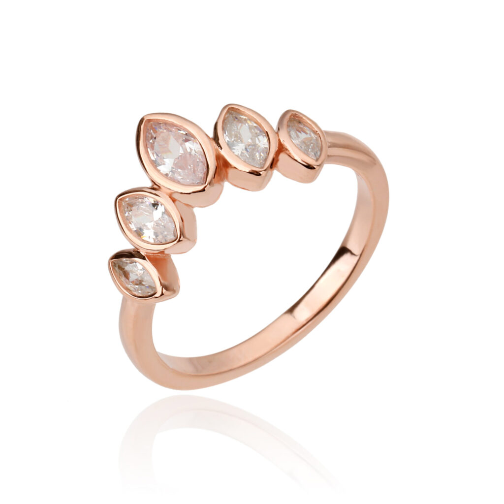 השלימי את הלוק עם טבעת רוז גולד עדינה, משובצת ב-5 אבני חן זוהרות.