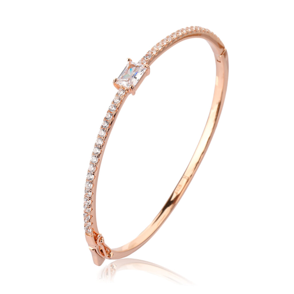תני ללוק שלך טאץ’ יוקרתי עם צמיד קשיח מציפוי רוז גולד 14 קראט, בעיצוב קלאסי ומרשים. משובץ באבן חן נוצצת במרכז, שמוסיפה ברק ואלגנטיות מושלמת לכל הופעה’ ליום יום או לאירועים מיוחדים.