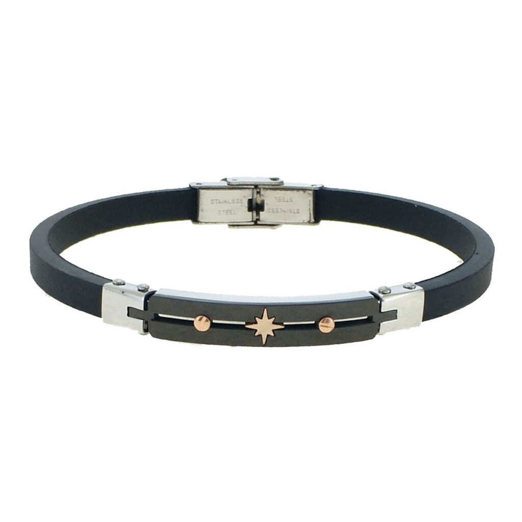 השלם את הסטייל עם צמיד עור שזור בעיצוב מודרני וגברי, המשלב אלגנטיות עם פונקציונליות.