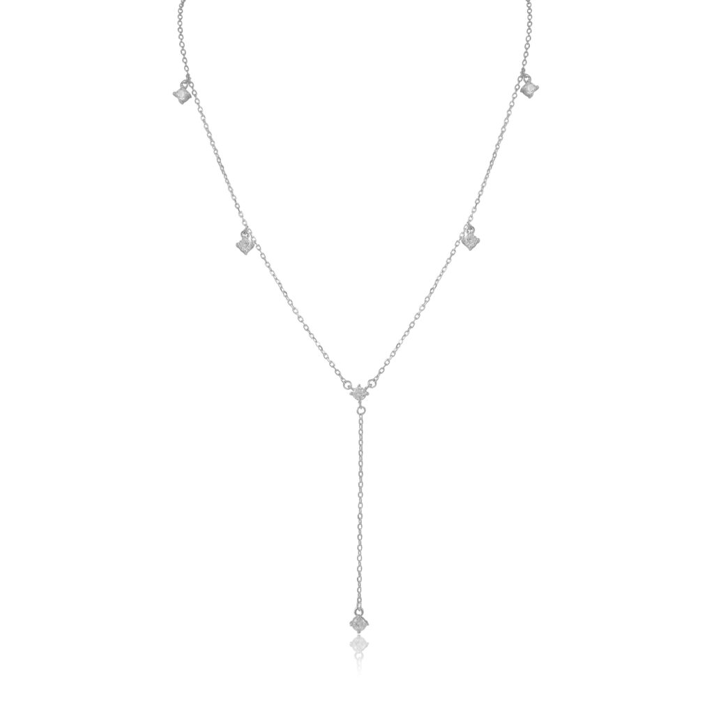 שרשרת ענייה נופלת מכסף עם אבני חן